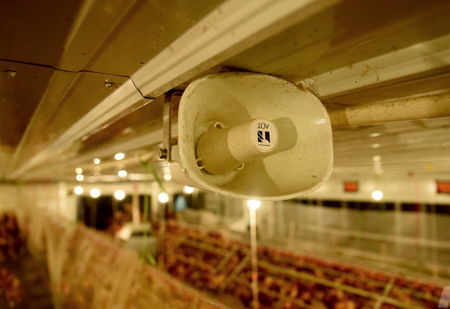 Đàn gà được nghe những bản nhạc không lời du dương… Ảnh: KT